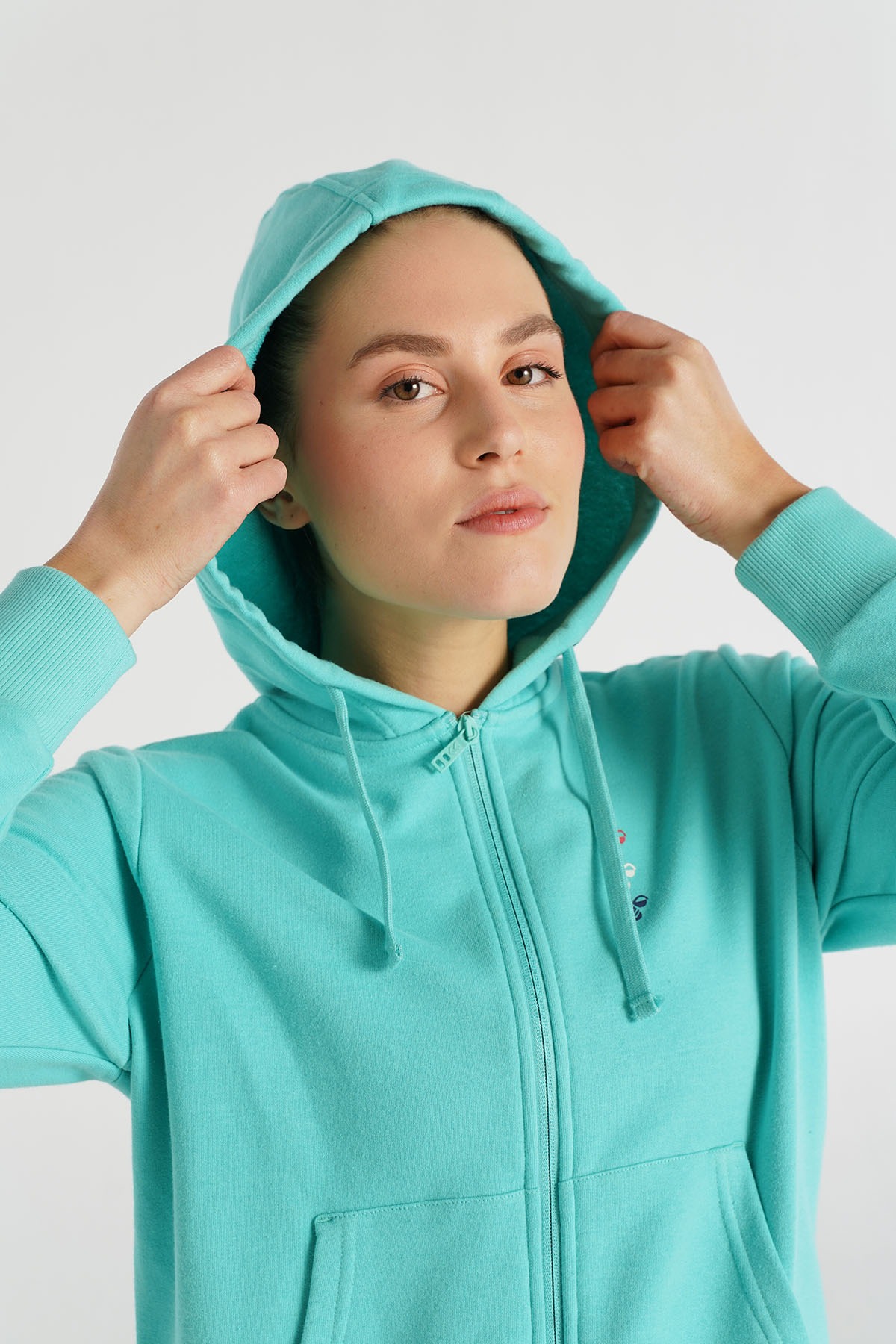 Yeşil kadın DORA FERMUARLI HOODIE, şıklığı ve rahatlığı bir arada sunan mükemmel bir seçenek. Yumuşak pamuklu kumaşı, vücuda oturan regular fit kesimiyle günlük kullanımda konfor sağlar. Kapüşonlu tasarımı, soğuk havalarda ekstra koruma sunarken, kanguru cepleri ise pratiklik kazandırır. Uzun kollu ve ön fermuarlı bu hoodie, üzerine işlenen renkli logo baskısı ile modern bir hava yaratır. Hem spor hem de şık kombinlerle rahatça kullanılabilecek bu parça, tarzınızı tamamlamak için ideal bir seçimdir.