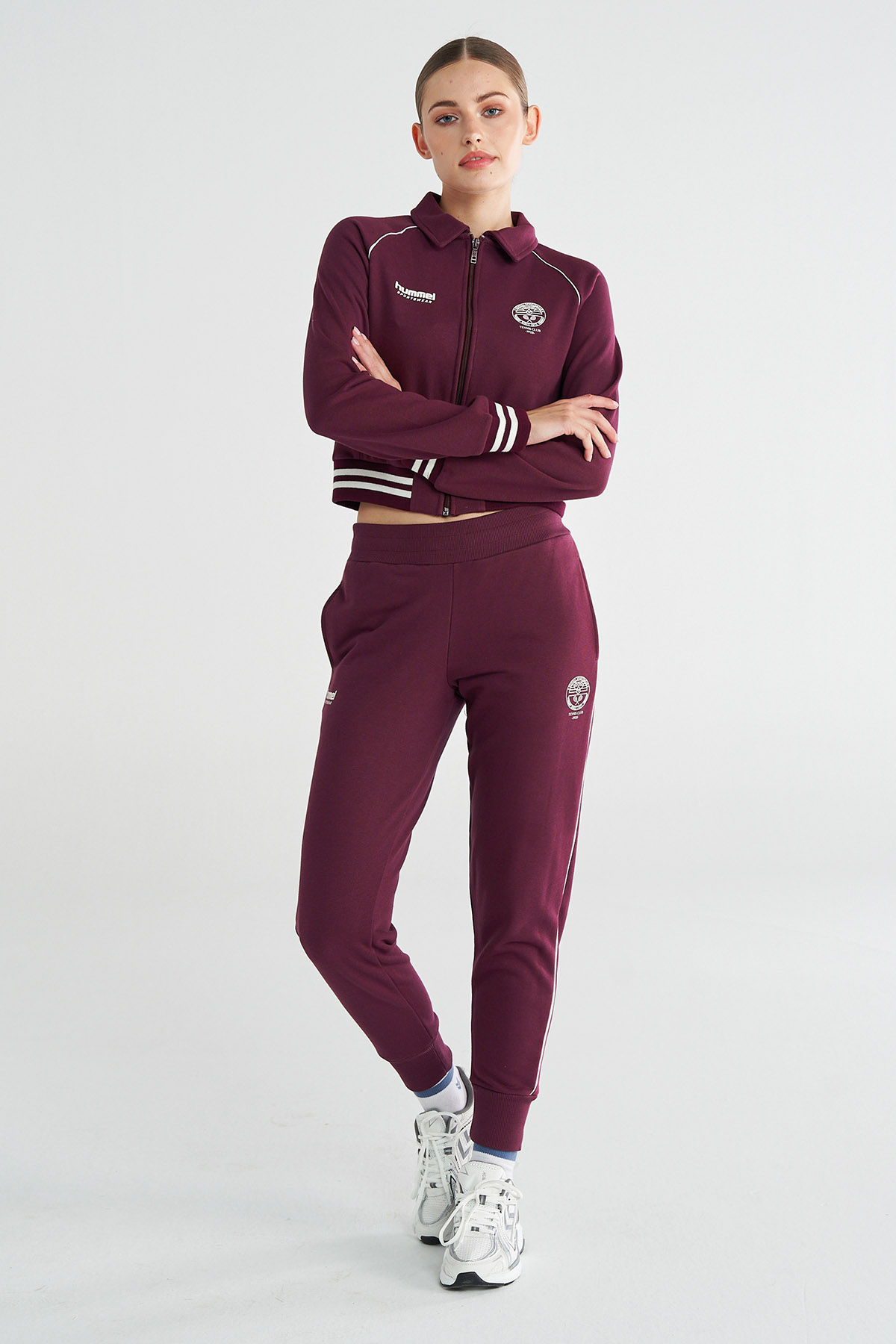Bordo kadın JAMAL EŞOFMAN ALTI, hummel tenis kulübü logosuyla sportif şıklığı vurgulayan özel bir tasarıma sahiptir. Pamuk ve polyester karışımı kumaşı sayesinde yumuşak dokulu ve dayanıklı bir kullanım sunar. Regular fit kesimi rahat bir oturuş sağlarken, cepli yapısı günlük işlevselliği destekler. Manşetli paça detayı ise hareket sırasında konforu artırır ve modern bir görünüm kazandırır.