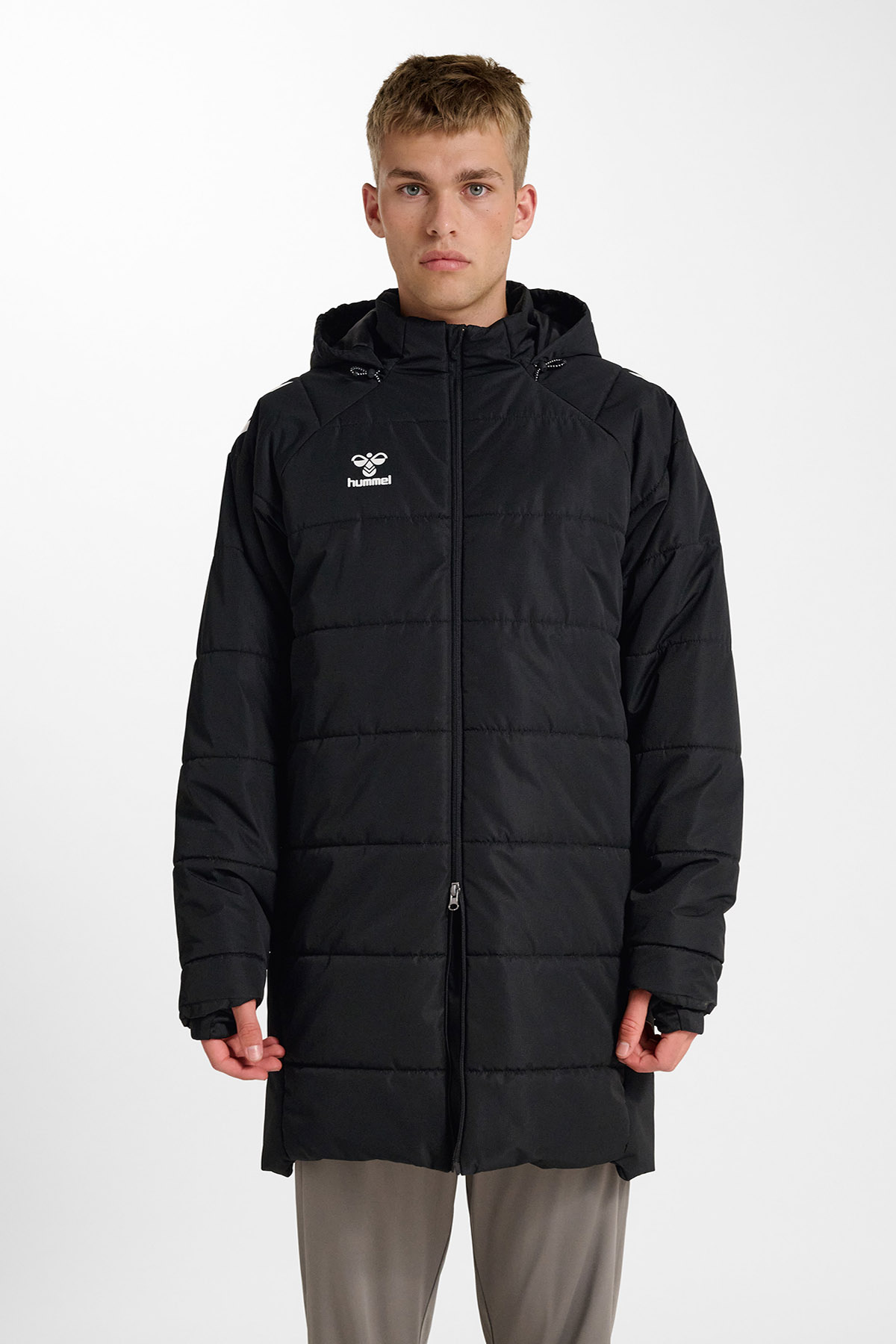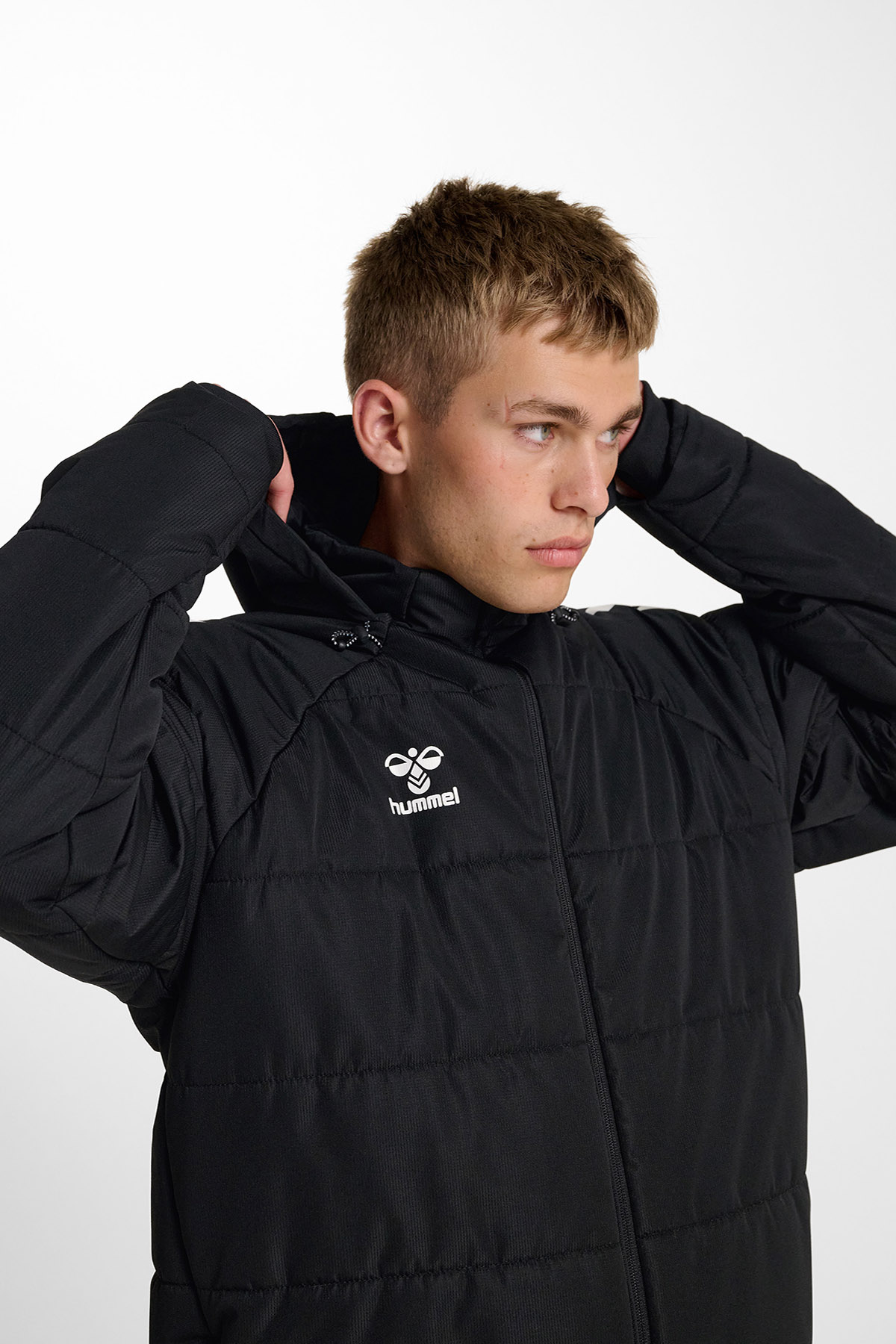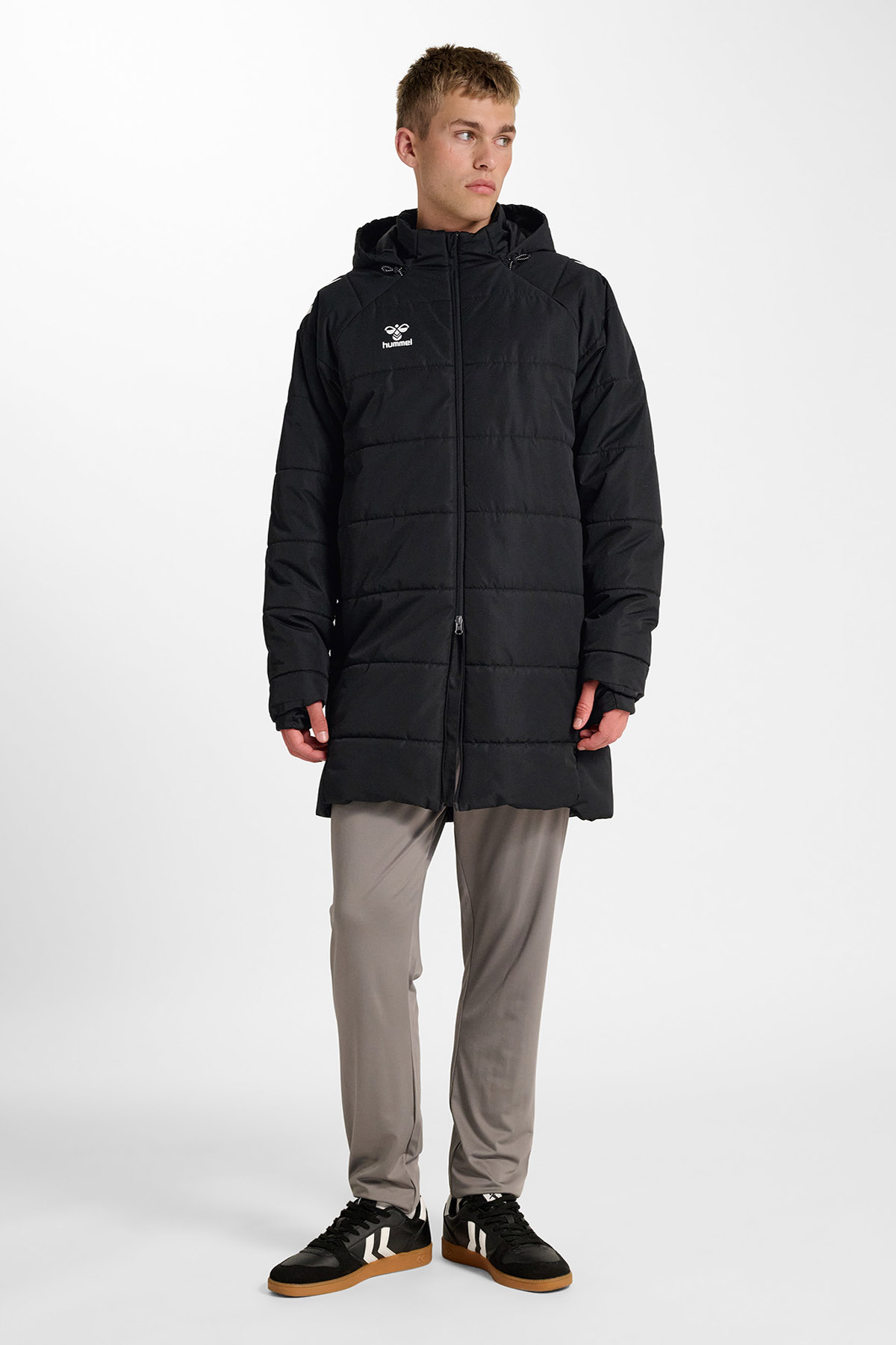 LEAD 2.0 BENCH MONT, dayanıklı dokuma kumaştan üretilmiş olup suya dayanıklı ve flor içermeyen özel bir kaplamaya sahiptir. Ön kısmında tam boy fermuar, değerli eşyalar için fermuarlı cep, ekstra depolama alanı sunan iç cep ve hava koşullarına karşı koruma sağlayan ayarlanabilir kapüşon bulunur. Rahat bir kullanım sunan regular kalıba ve iç kısmında sıcak tutan astara sahiptir. Omuzlardaki ikonik hummel şeritleri ve göğüs kısmındaki hummel logosu, bu montun sportif tarzını tamamlar. Dayanıklılık, konfor ve şıklığı bir araya getiren bu tasarım, antrenman öncesi ve sonrası kullanım için ideal bir seçenektir.