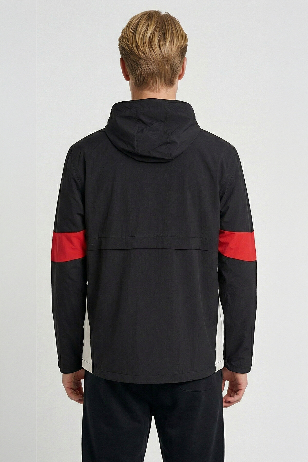 Siyah erkek LYENO YAĞMURLUK, renkli blok detaylarıyla dinamik ve modern bir stil sunarken, hafif yapısıyla gün boyu konfor sağlar. Kapüşonlu tasarımı ve uzun kol formu, değişken hava koşullarında ekstra koruma sunar. Regular kesimi sayesinde rahat bir kullanım sağlayan model, fermuarlı yapısıyla pratik ve işlevsel bir deneyim oluşturur.