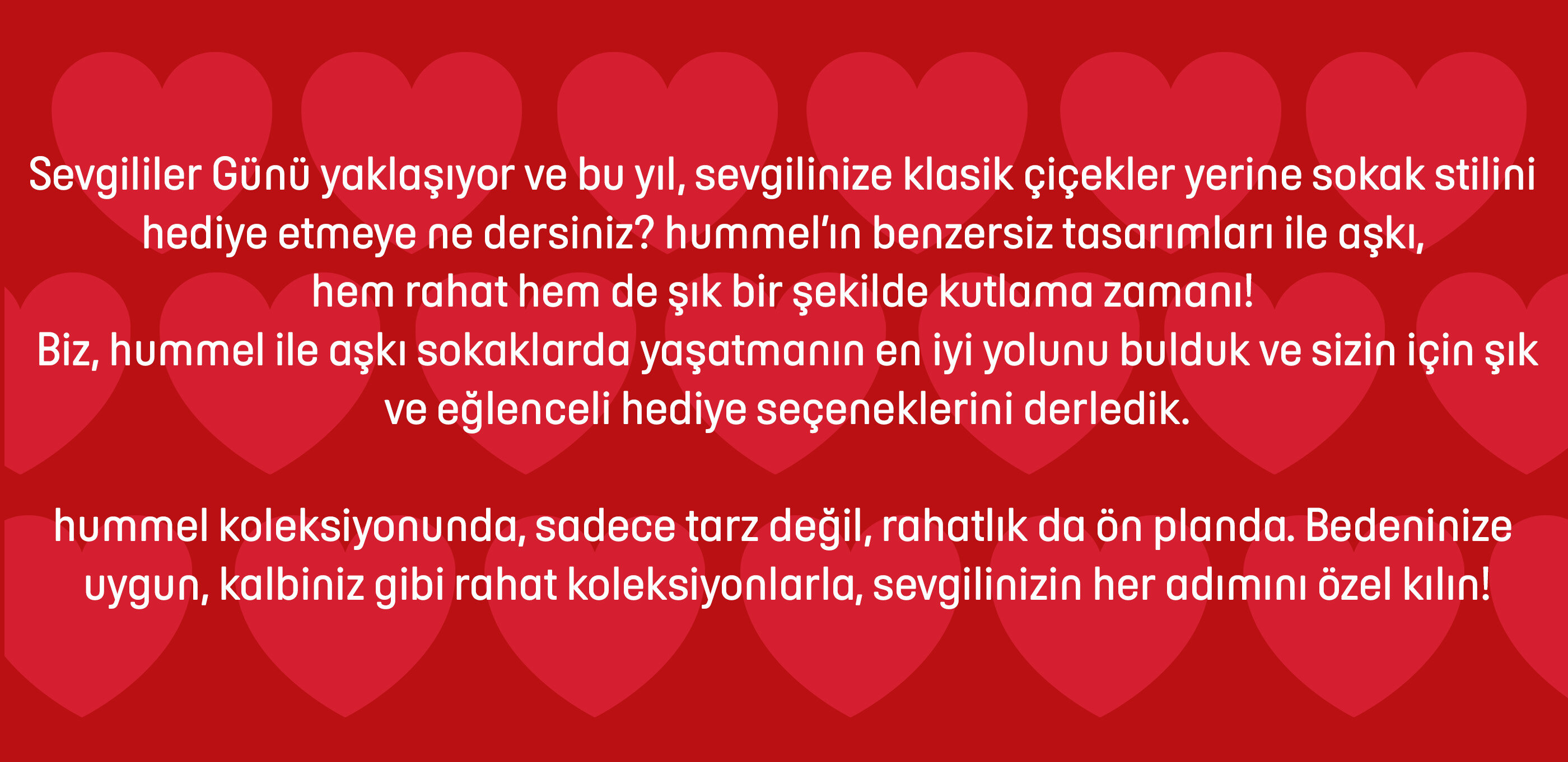Bu Sevgililer Günü'nde siz de düşünülmüş ve ona özel olduğunu hissettirecek bir hediye tercih etmek için hummel spor giyim ve aksesuar koleksiyonlarını mutlaka keşfedin!
