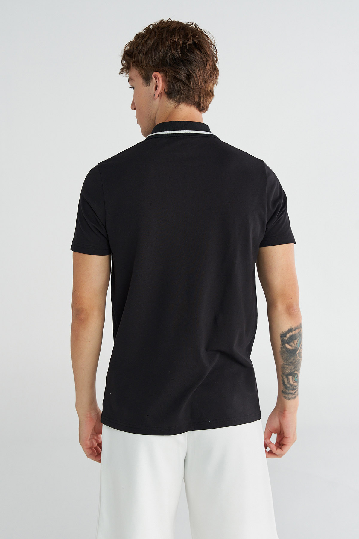 Siyah erkek WAYNE KISA KOLLU POLO YAKA TİŞÖRT, klasik duruşu modern detaylarla buluşturur. Günlük kullanım için ideal olan bu model, triko yaka ve düğme detaylarıyla zamansız bir şıklık sunar. Regular fit kesimi konforlu bir kullanım sağlarken, kısa kol tasarımıyla sıcak havalarda serinlik hissi verir. Göğüs kısmındaki arma baskı, tişörte karakter katan dikkat çekici bir detaydır. Sportif şıklığı tercih edenler için hem şehir hayatında hem de hafta sonu kombinlerinde rahatlıkla kullanılabilecek bir seçenektir.